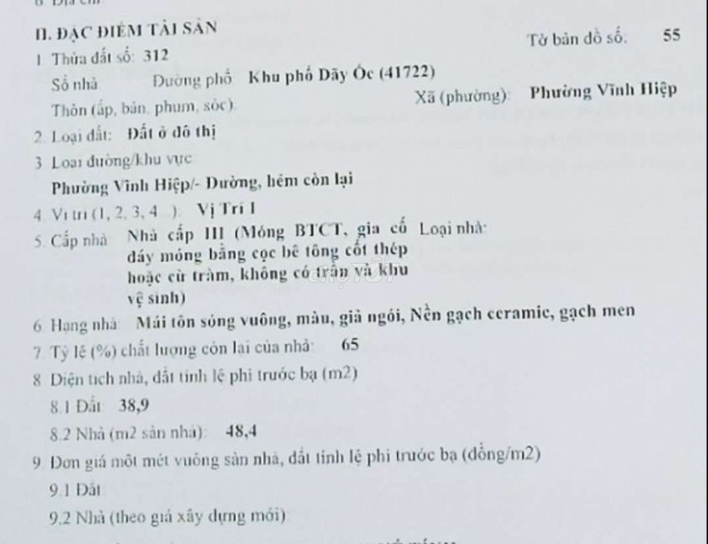 Diện tích đất 38,9m2, diện tích sàn 48,4m2, nhà 1 trệt 1 gác lửng, có thể sửa chữa thêm tiện nghi.