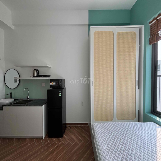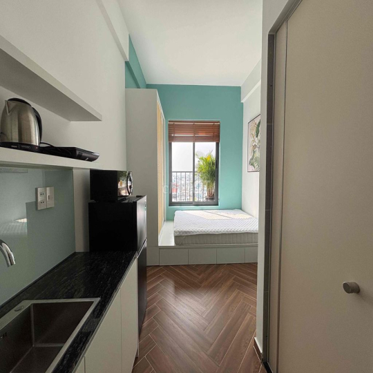 Phòng sạch đẹp, thoáng mát, đầy đủ nội thất gồm giường, tủ, máy lạnh, tủ lạnh, máy giặt, bếp nấu và khu vực sinh hoạt tiện nghi. Không gian yên tĩnh, an ninh tốt, phù hợp cho nhân viên văn phòng, sinh viên hoặc khách ở lâu dài.