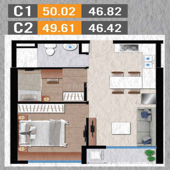 - 50m2 2 phòng ngủ, 1wc (có rèm, bếp từ, giàn phơi, sàn phòng ngủ lát gỗ): Giá 8 triệu