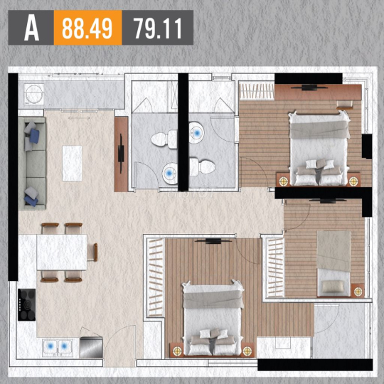 - 88m2 3 phòng ngủ, 2wc (full nội thất): Giá 15-16 triệu