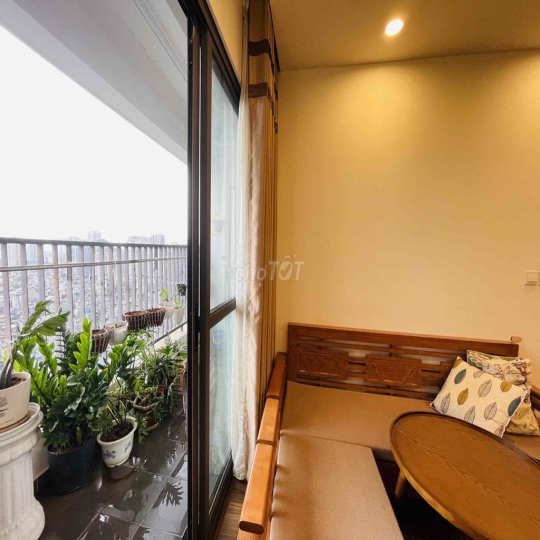 - Ban công rộng trồng cây, hoa trái. Logia thoáng mát, có lưới bảo vệ