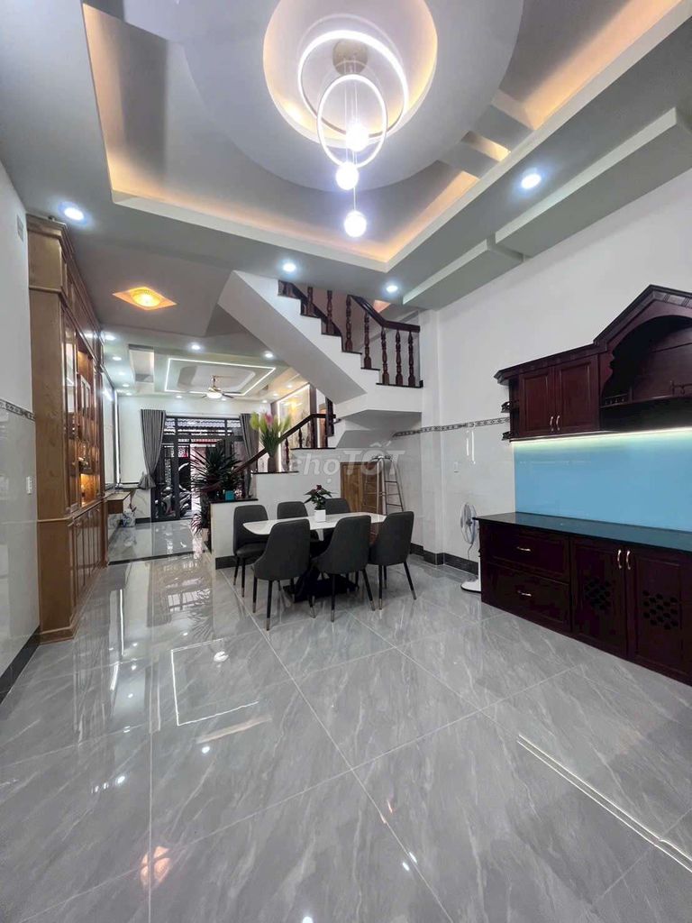 - Diện tích : 4,5m x 18m. CN 80m2. SD 199m2. Nhà đẹp mới hoàn thiện ở ngay.