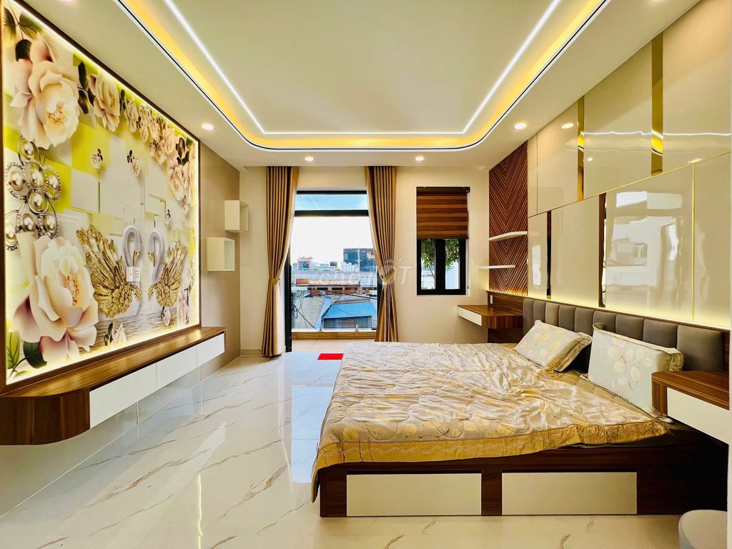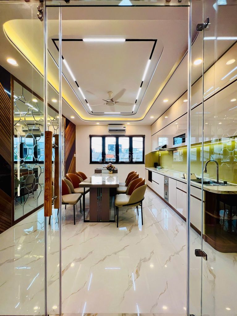 - Với kết cấu 1 trệt, 1 lửng, 3 lầu ( bao gồm 1 gara oto, 1 Phòng khách, 1 phòng bếp lớn, 5 phòng ngủ, 7 WC, sân thượng sau, phòng thờ, phòng xông hơi,...)