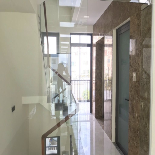 - Kết cấu: hầm, 5 lầu, thiết kế sàn trống suốt, cầu thang và toilet cuối nhà, có thang máy và máy lạnh đầy đủ